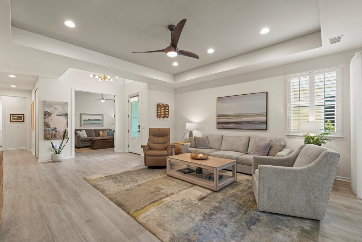 Like-new Antigua Villa built in 2023, offering 2BR/2BA and 1,558 sq ft of thoughtfully designed living space. This open-concept floor plan features a bright, spacious kitchen with ample cabinetry and prep space, flowing seamlessly into the dining and living areas-ideal for both everyday living and entertaining. Large windows bring in abundant natural light throughout.The primary suite offers a private retreat with a generous walk-in closet and well-appointed bath. A separate guest bedroom and full bath provide comfort and privacy for visitors or a home office.Enjoy serene lagoon views from the screened lanai, perfect for morning coffee or evening relaxation. Additional highlights include a 2-car garage, modern finishes, and low-maintenance construction.Located in a highly desirable, amenity-rich community featuring resort-style pools, fitness center, dining, and an active social calendar. Convenient to Bluffton, Hilton Head, golf, shopping, and coastal attractions.